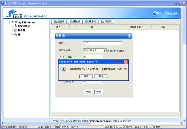 第六步:创建用户,弹出对话框要求创建用户。输入用户名、密码和主目录,然后单击确定。