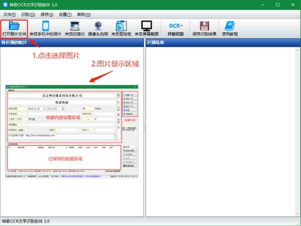 第一步:打开要识别的图片,支持各种图片文件。打开后,图片会显示在左侧的“图片显示区”。