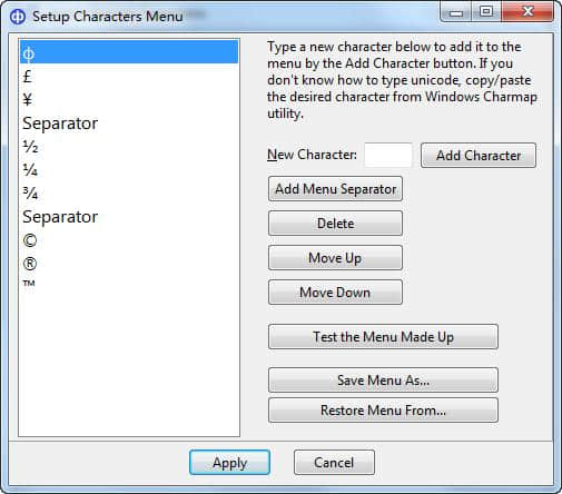 3.您需要编辑菜单来添加您自己的特殊字符,因此请使用“编辑菜单”按钮来自定义菜单。