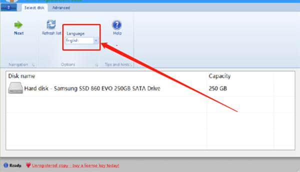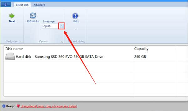 2.单击英语选项旁边的向下三角形图标,选择要更改的语言类型。