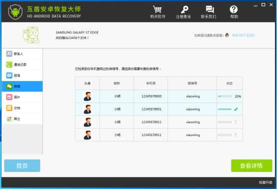 2.开启互盾安卓恢复,识别软件上的数据。
