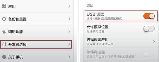 1.打开上的USB调试,连接电脑。