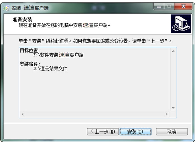 在下图所示的对话框中,确认安装路径和结果文件路径,点击“安装”按钮。