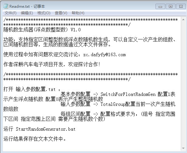 随机数生成器(浮点整数)V1.0,支持生成指定的区间整数或浮点随机数,可自定义一次生成的随机数组数和区间随机数,生成的数据以文本文件保存。