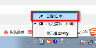 按Alt+LeftShift循环显示语言,直到两个字母的语言代码显示为“JP”。