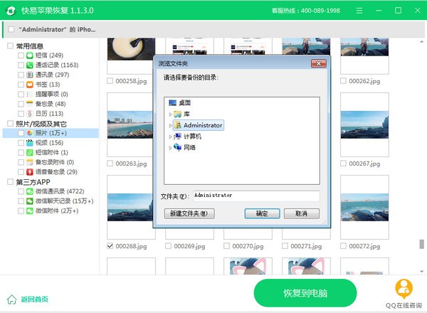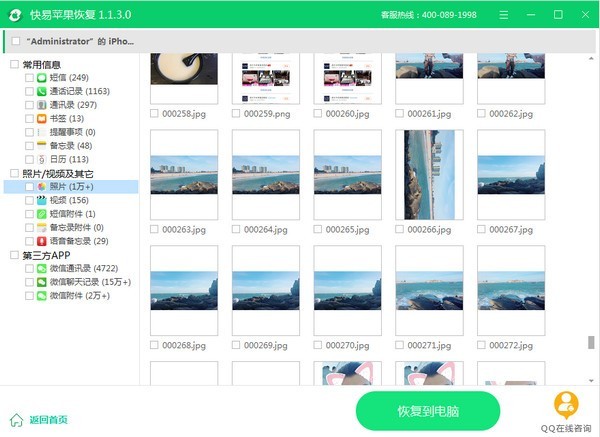 快易苹果恢复是一款专业的苹果手机数据恢复软件。它有友好的用户体验和向导。您只需三步即可恢复数据。即使你不熟悉它,你也可以很容易地通过电脑找到丢失的数据。它可以恢复iPhone/ipad/iPod丢失的数据,包括照片、通讯录、书签、提醒和日历。
