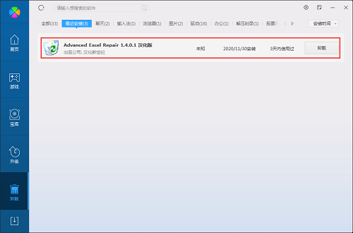 方法二:安装并打开360软件管理器,在卸载选项列表中找到Advanced Excel Repair软件,点击卸载。