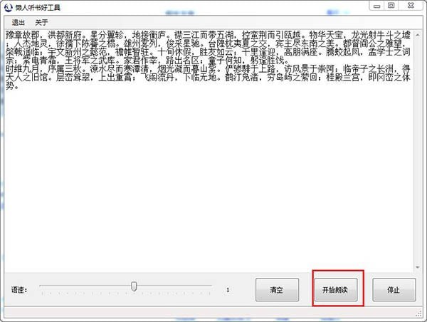2.小编随意抄一段。点击开始阅读,会自动开始阅读。拉动语速进度条调整语速。