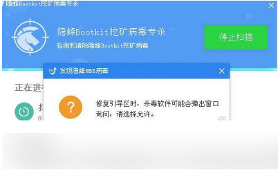 隐蜂Bootkit挖矿病毒专杀使用注意: