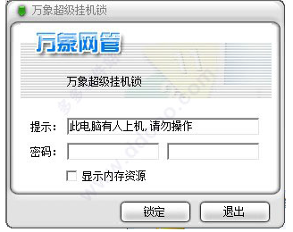 万象超级锁是一款非常好用的电脑锁软件,提取自万象,安全性非常强大。同时软件还是绿色版本,打开就可以用了。还可以自定义提示文字,方便您离开时使用,防止他人触碰您的电脑。它非常容易使用。