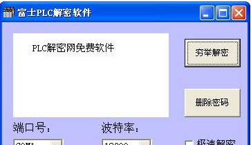 富士plc解密软件是plc解密网免费提供的plc解密工具。软件界面友好,有穷举解密和极快解密两种解密方式,支持用户自定义端口号和波特率,可以轻松解决富士NB、NJ、NS、SPB等N系列PLC密码,不受任何数量限制。