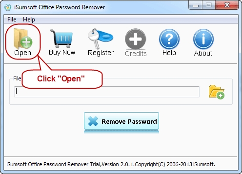 1)在计算机上下载并安装后,启动Office密码删除程序,然后单击“打开”按钮添加要删除密码的目标Office文档。