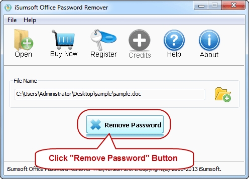 现在,单击“删除密码”按钮开始使用在线解密服务删除办公室密码,这需要您的计算机连接到互联网。该程序将立即完全删除您锁定的微软办公Word/Excel文档的密码。