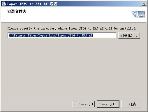 3.选择软件的安装目录。默认为“C: PG RAM文件Topaz实验室Topaz JPEG到原始AI”