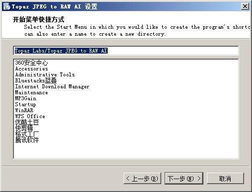 5.选择开始菜单文件夹名称,默认为“Topaz Labs/Topaz JPEG转RAW AI”。