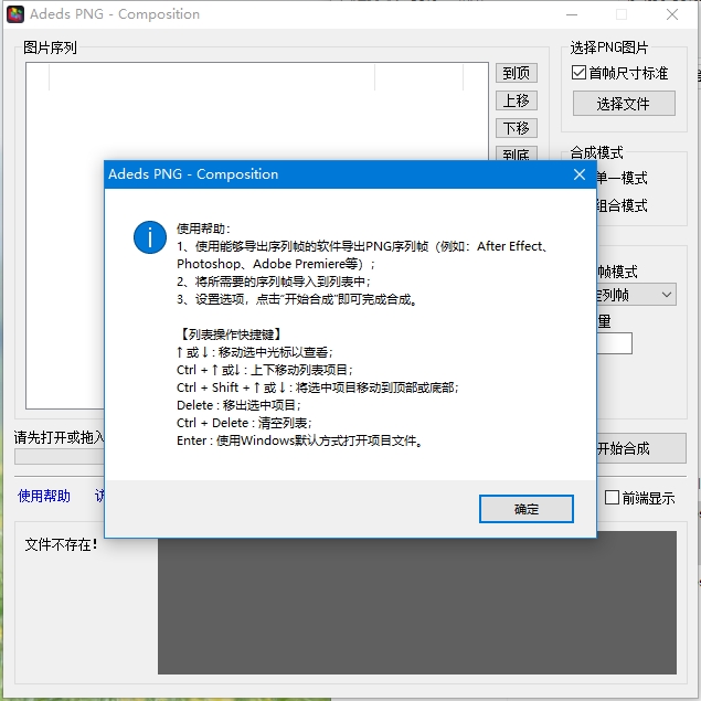所以我在大榭的基础上进行了改进,目前自己使用还是挺方便的。AE导出PNG序列帧后,拖拽到这个小软件中(顺序不对可以自己调整图片顺序),设置参数,生成。
