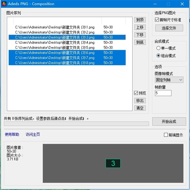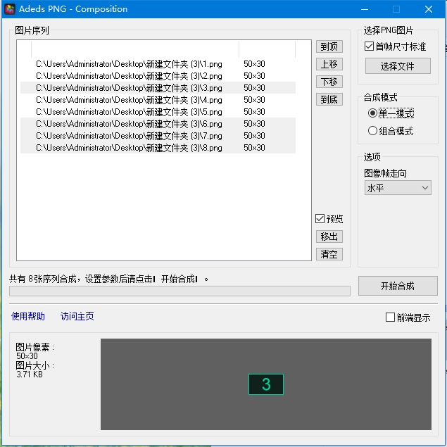 这个PNG序列图合并软件是我写网页需要用到的一个序列图。但是对于AE导出的几个序列帧,需要合并成一个图像使用,网上搜到的只能是横的或者竖的,或者看不懂或者做不到,或者有木马后门等等。我只能用PS一个一个拼。效率可想而知。几个序列的到来没有问题。如果有很多序列,那简直不太酷。