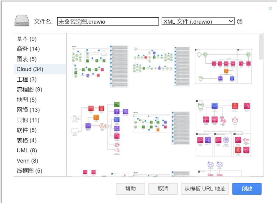 第一次打开Draw.io时,首先选择语言中的简体中文,然后关闭软件,重新打开中文界面。