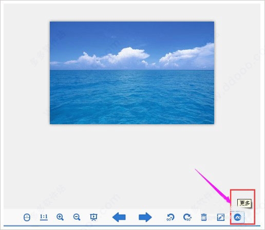 3.我们把鼠标放在页面底部,会弹出2345看图王的工具栏。在工具栏的右侧,我们可以看到一个向上的箭头(更多),如下图所示。