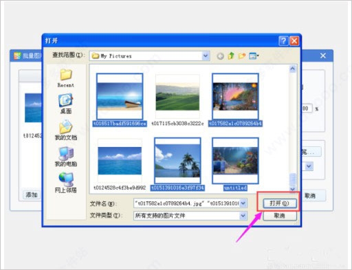 7.现在,让我们选择4张照片,点击“打开”返回批量图像转换页面。