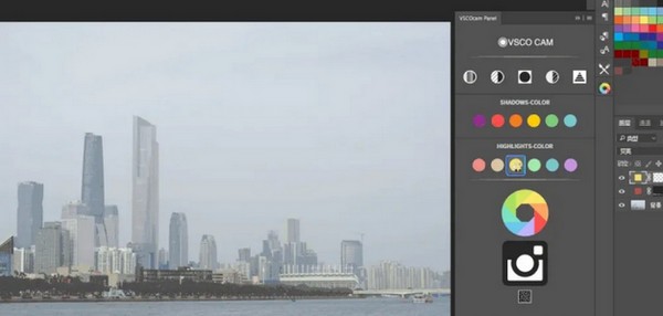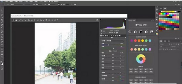 是时候突出方便了。只需点击“打开图像”返回到PS工作区,点击打开VSCO面板,并在其中选择合适的过滤器。如果还需要微调,当然可以再次调用相机原始滤镜进行调整。