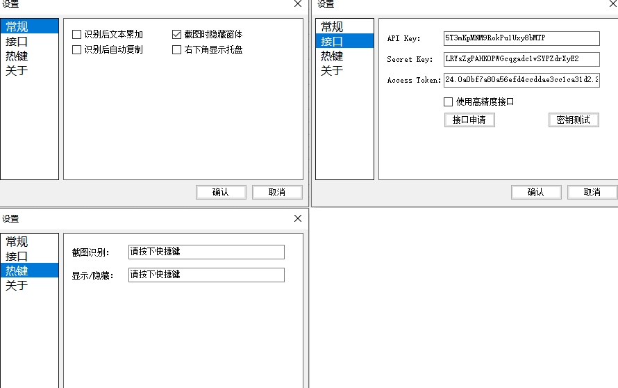 问:识别率比较低。希望能改进一下。答:识别率取决于界面。我们不能干预。如果界面识别率高,就会高。关于识别率,从v1.03版本开始,增加了百度高精度界面,每天免费500次,非常有限。建议自己申请接口。界面应用教程可以看一下这个帖子:天若OCR字符识别表单识别百度API界面应用Q:你会考虑做表单OCR和公式吗OCRA:短期内不会考虑,一方面是我自己不会用,另一方面是免费次数太少,很多朋友下载工具用作者的密钥识别。问:你在考虑翻译功能吗?答:如果你不打算做翻译功能,那是一个纯字符识别工具。