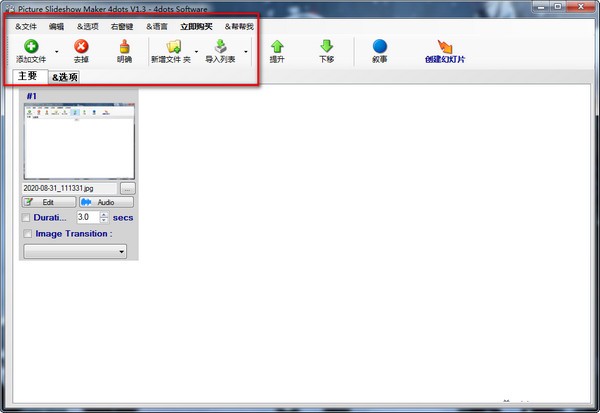 要为Picture Slideshow Maker 4dots将创建的图片幻灯片指定选项,请按第二个选项卡上的选项。