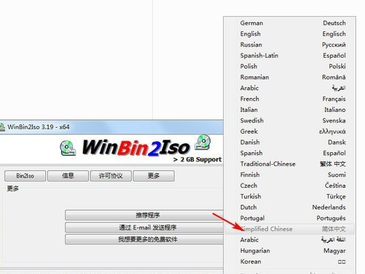 打开WinBin2Iso,在软件页面右下角选择#LNG,然后选择简体中文。