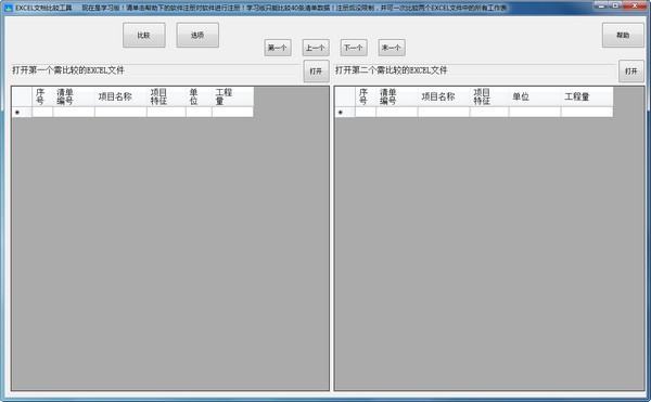 1.该工具用于比较部分列表数据。对比时自动忽略每页的表头数据,预算软件导出的数据可以直接用于对比。