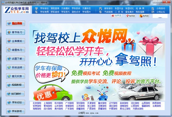 众悦网驾驶员模拟考试系统是专业的驾驶员模拟考试系统。该软件集成了多项驾考数据,可以在线为用户提供驾考培训功能,帮助用户省时省力通过驾考。