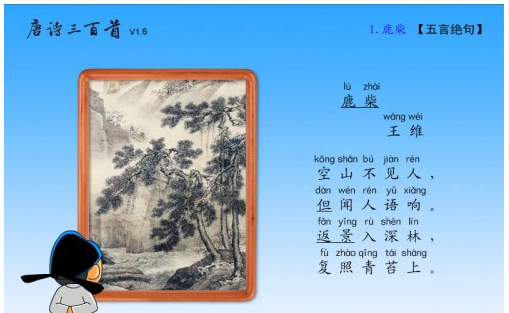 软件中的古诗词不仅有文字、注音、朗读,还有插图增加场景,让古诗词更好理解。