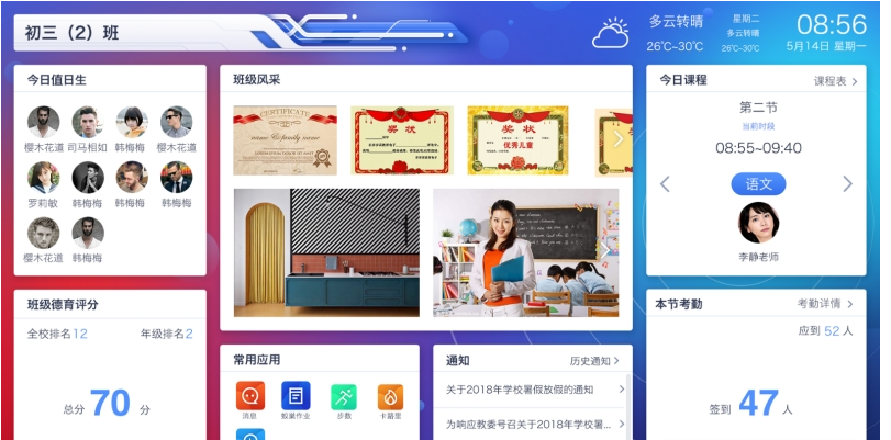 为学生提供实时自我评价的智能环境,为教师提供高效的工作,成为名师的教学平台,为学校提供因材施教的教学环境,为家长提供随时了解孩子学习情况的机会,实现家校互动。