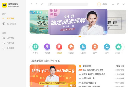 好芳法课堂提供学习功能,学生在软件上购买课程就可以查看课程内容,软件提供语文、英语、数学、地理、历史 等多门课程,进入软件找到自己感兴趣的课程就可以直接购买,软件提供永久播放权限,每天都可以在软件重复学习课程,结合书本教材内容讲解题目,让学生可以学习到和自己课本相关的知识,让学生在软件上找到解题思路、提升阅读理解、作文能力;好芳法课堂提供的课程都是录播形势,课程都显示文字介绍,您可以阅读课程介绍再决定是否购买,课程为订阅课程,购买成功后可以永久回听更新的全部课程!