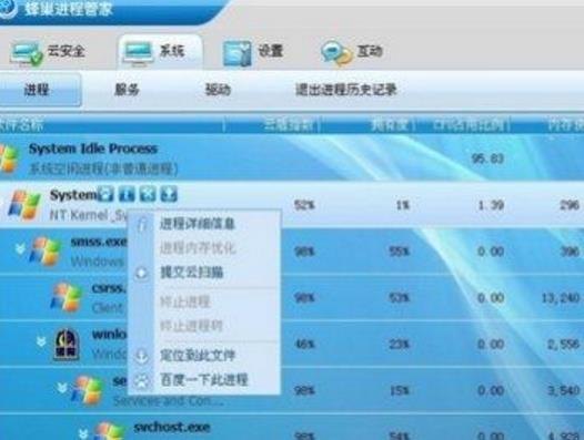 贴心的进程操作:蜂巢进程管家用户不仅可以关闭不必要的进程,还可以对每个进程进行内存优化、百度检查、文件定位等功能,方便用户自己制作运行程序。