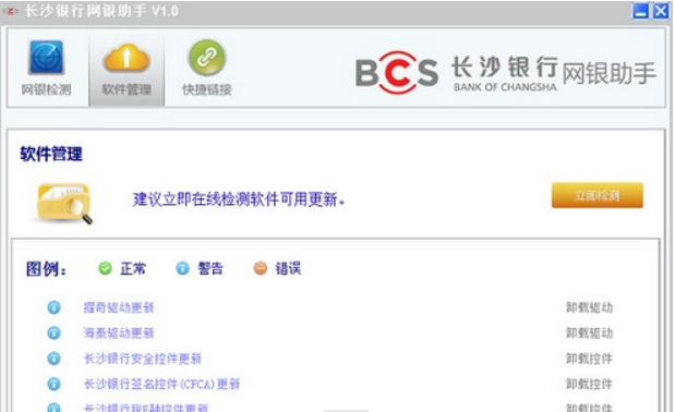 如果有网银,肯定会用版本长沙银行网银助手。有了这个长沙银行网银助手版本的软件,可以自动安装缺失的网银控件,无论是什么问题,一键搞定,方便快捷简单,不用担心安全问题。第一次登录会提示您加载,有时可能会失败,因此需要手动加载。