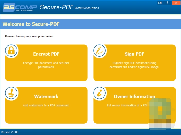 使用此按钮,您可以加载定义PDF文档所有者的功能。第二,加密PDF