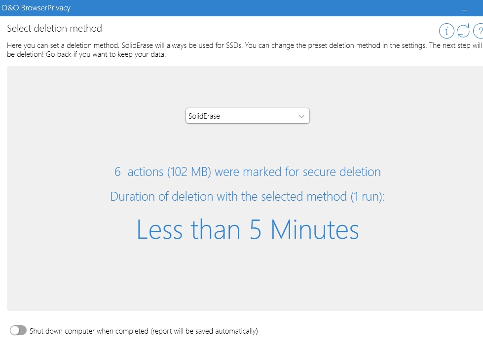 在这里,您可以选择要删除的浏览器数据。默认情况下,正在处理的浏览器可以在设置中进行设置,也可以在每次删除时进行更改。在下一步中,您可以选择删除方法,也可以保持返回的数据不变。
