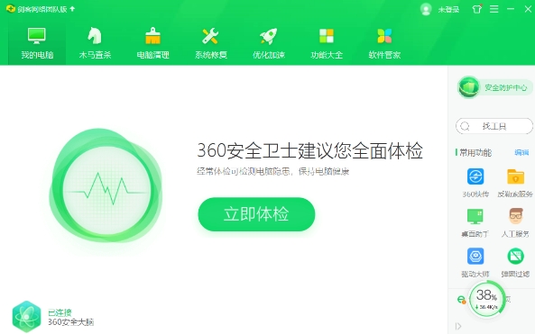 360安全卫士团队版主要功能有:电脑体检、木马查杀、bug修复、开机加速、软件发布、推送、流量控制、资产管理。