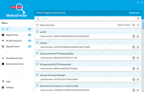 一般来说,MyKeyFinder是工具之一,你想知道没有它怎么管理!备份所有软件注册密钥非常有用,这样的应用程序是制作密钥的直接方式。界面干净易用,各种专业知识的用户都可以浏览。它是轻量级的,几乎不消耗资源。
