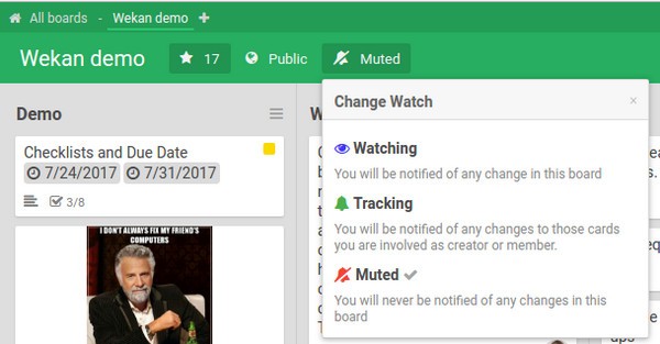对于Wekan平台,这意味着以下选择: