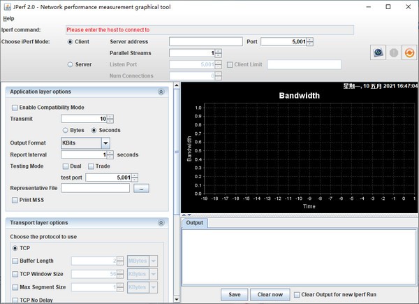 Jperf windows Edition是一个简单实用的网络测试工具。也是一个带图形界面的iperf程序,使用JPerf程序时可以快速简化你的命令行参数,测试结束后仍然以图形结果显示并保存;主要致力于TCP和UDP带宽测量,支持创建指定带宽的UDP流,包括你的数据包丢失,延迟抖动等等!