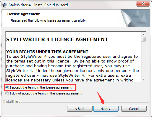 4.阅读安装许可协议,单击我同意,然后单击下一步。