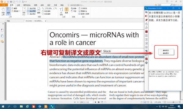 双击鼠标右键翻译模式:选中文本,双击鼠标右键进行翻译。这种模式最适合使用鼠标的用户。双击很方便,不会误译,因为平时不会随便双击。