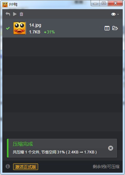 PP duck图像压缩软件Win版,PP duck集成了业界几个最好的开源图像压缩算法,并根据图像特征自动选择压缩参数。只需将图片拖入PP鸭,即可自动批量压缩,省时省心。