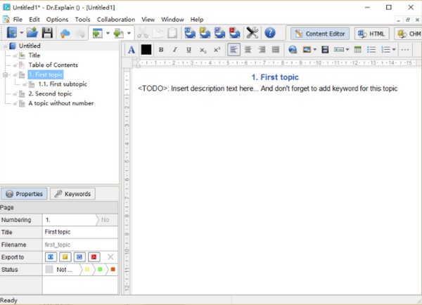 2.这个软件文档编写工具可以支持导出CHM、pdf、HTML和RTF格式。