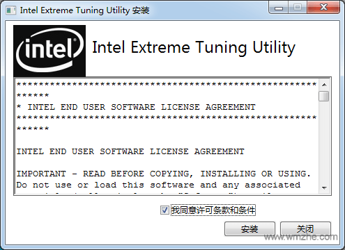 1.从本网站下载并安装英特尔Extreme Tuning Utility,打开安装程序,单击我同意协议,然后单击安装。