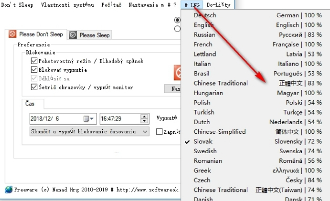 DontSleep32位+位版本是防止系统自动关机/重启/休眠的小软件。从它的名字就可以猜出它的功能是防止系统关机、待机休眠和重启。自带中文语言包,无需本地化,只需设置中文版本,软件目前完全免费。