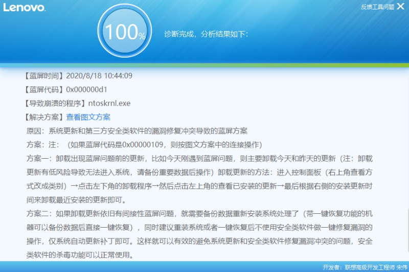 Lenovo蓝屏分析诊断工具是一款快速、方便、易用的电脑蓝屏分析诊断辅助软件。通过分析蓝屏产生的转储文件,分析蓝屏产生的原因。目前包含的蓝屏有限,不能保证覆盖所有蓝屏问题。请理解。系统环境故障的原因因型号不同略有不同,提供的方案有效性略有不同,可供参考。如果你的电脑经常出现蓝屏,你不知道英文是什么意思,可以下载这个Lenovo蓝屏分析诊断工具,可以给出中文界面蓝屏的原因分析以及蓝屏的解决方案。一般蓝屏后重启电脑后就可以使用这个工具了,它会调用蓝屏标识来分析蓝屏的原因。