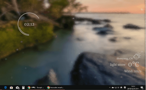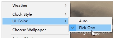 小雪的效果由于壁纸的种类繁多和颜色复杂,可能会导致时钟、天气等颜色不显眼。此时,您可以通过右键菜单中的用户界面颜色来指定颜色。