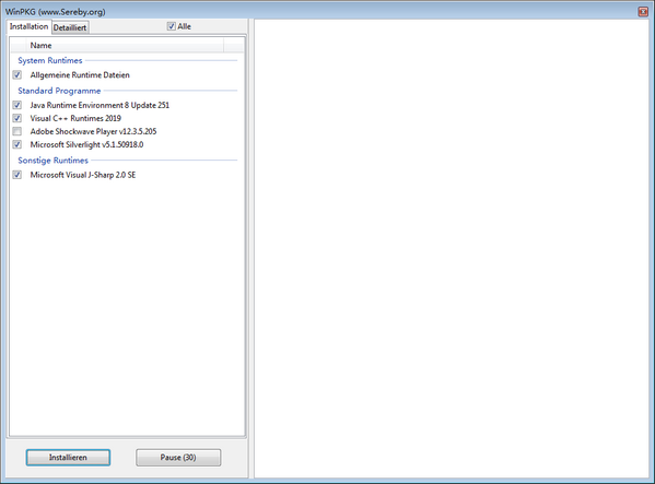 WinPKG是一款集成PC端计算机所需的所有运行环境的软件,包括安装VC++、Java、。网等。重新安装计算机时,使用软件只需点击一下即可安装所有必要的组件,避免出现问题!